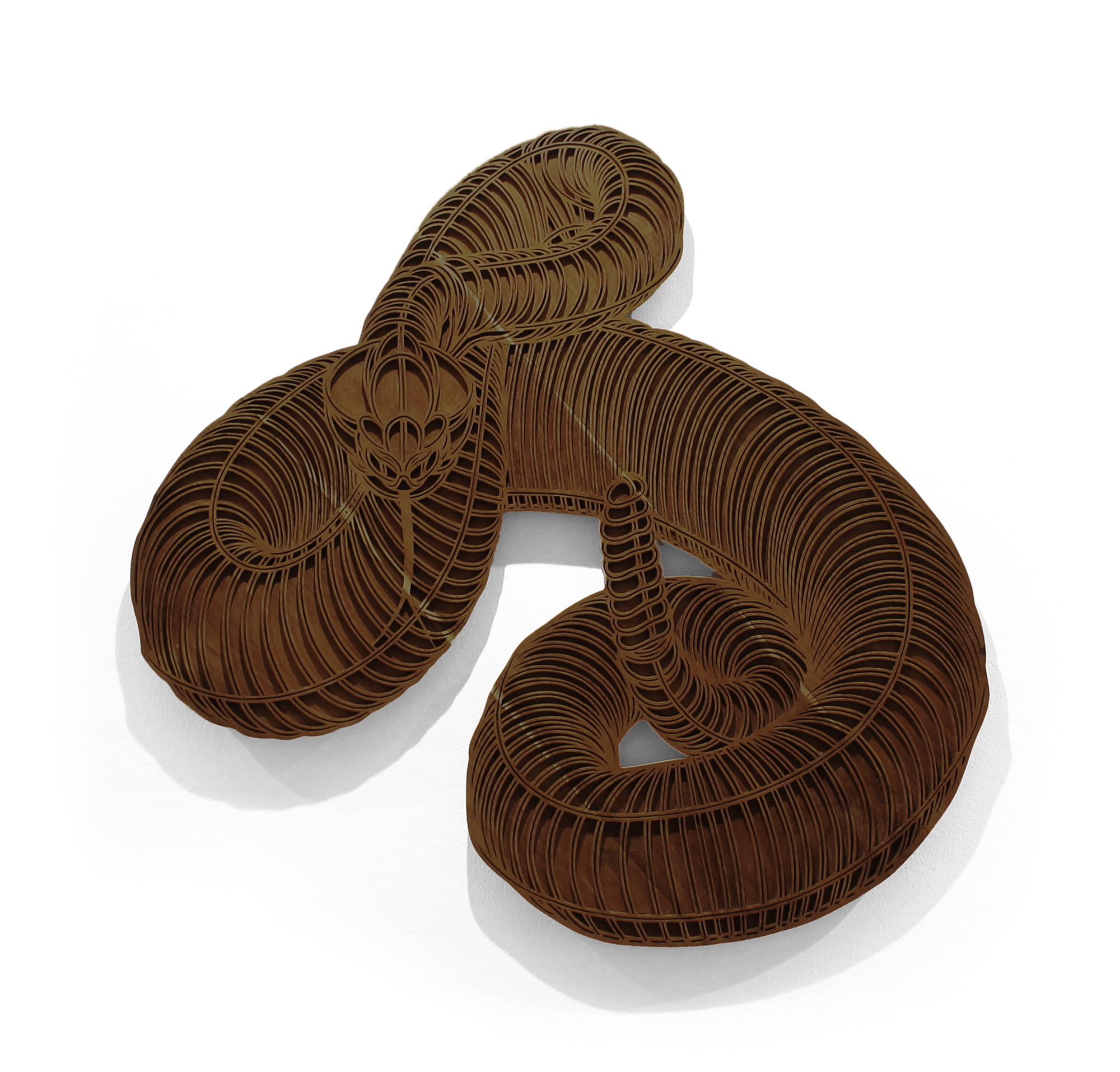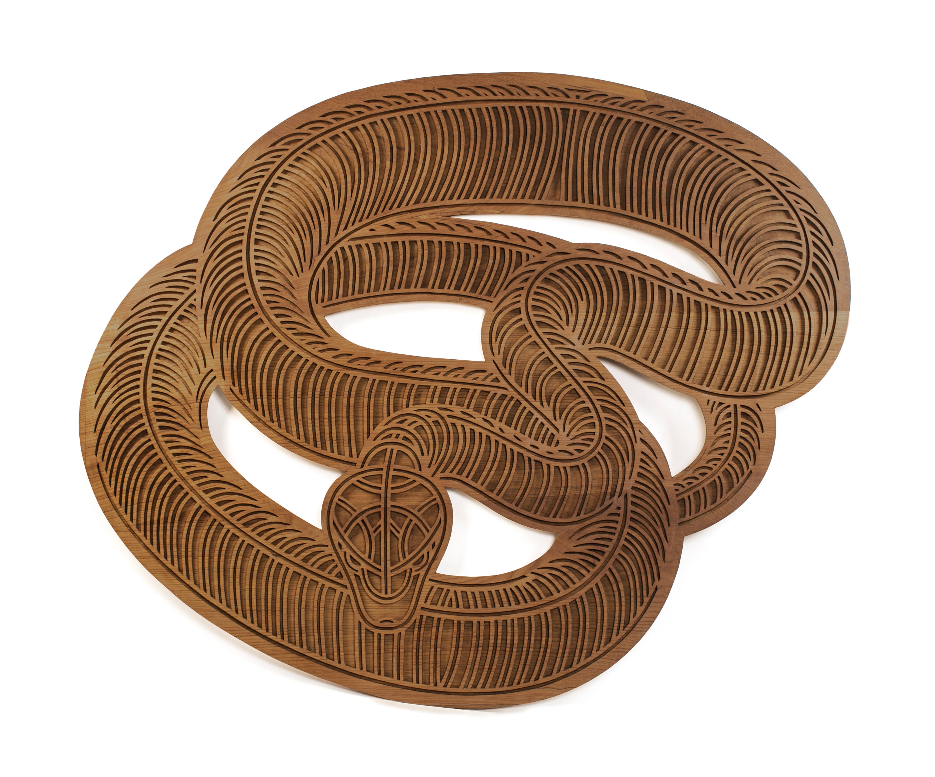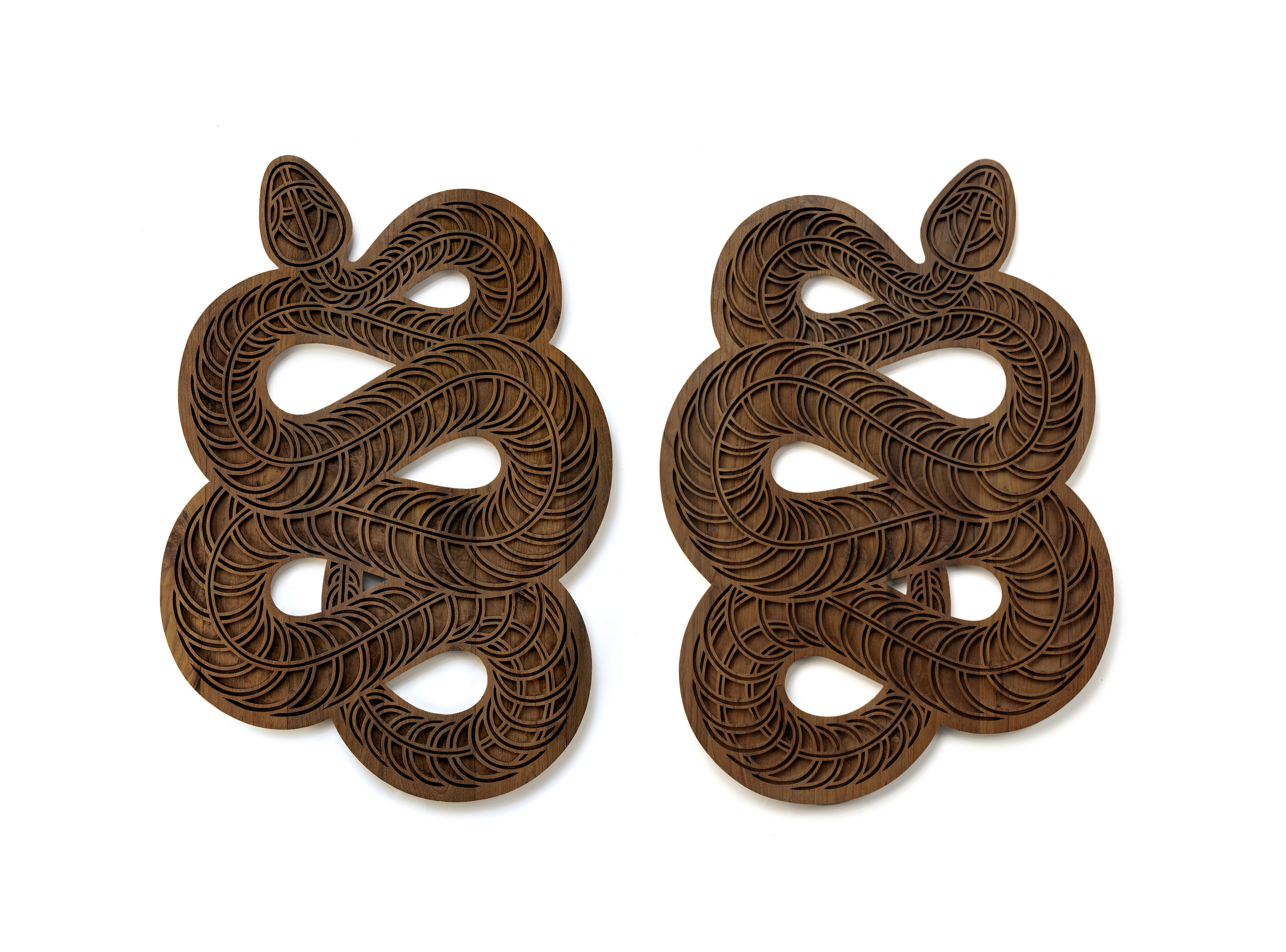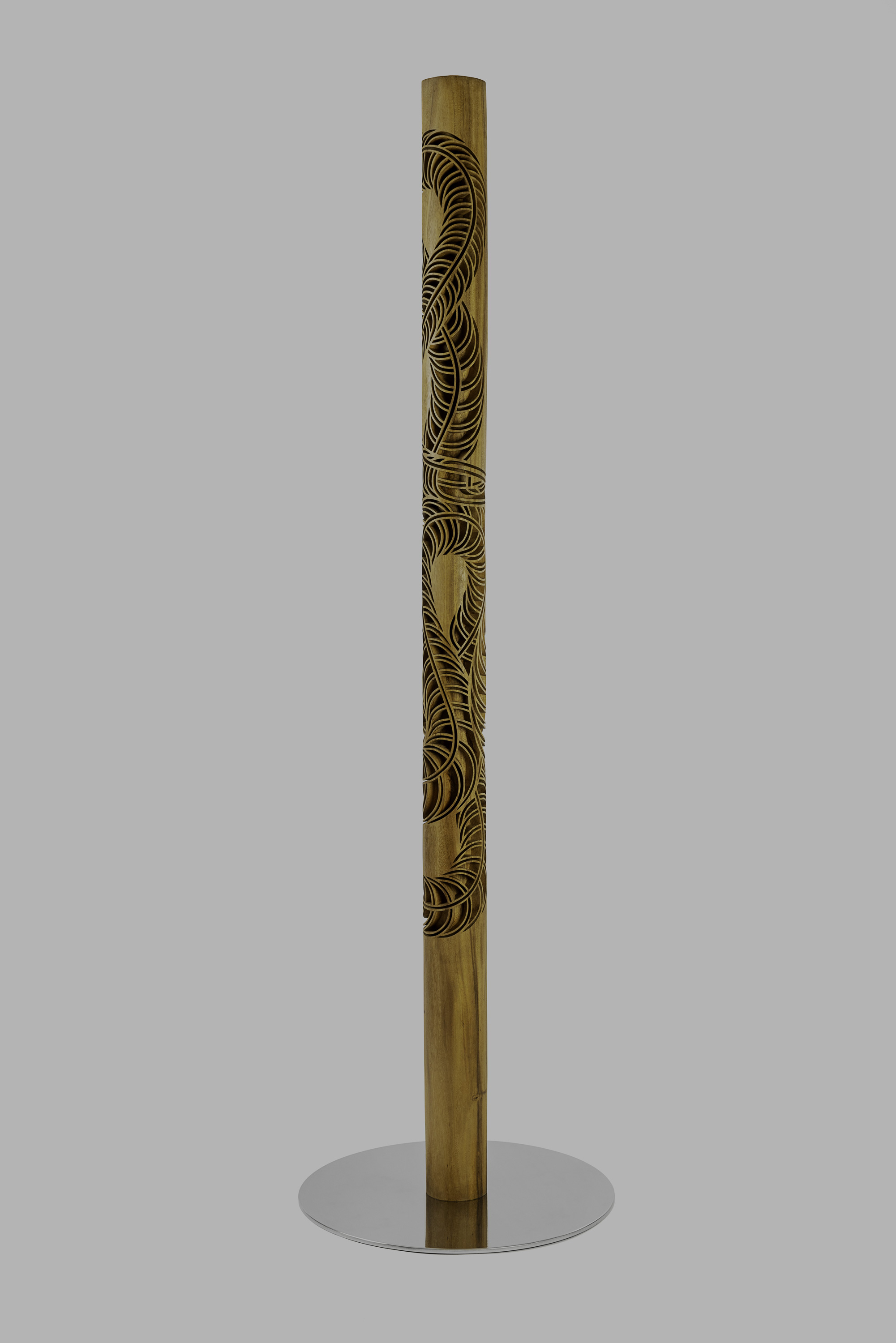 Gärtner’s interest in the unique and important role art plays in Balinese culture instigated his exploration in the traditional medium of wood carving. The complex forms initially drawn are created with a manual technique using hand-made steel blades. An intricate balance is established between the solid medium and the fine precise lines carved.
